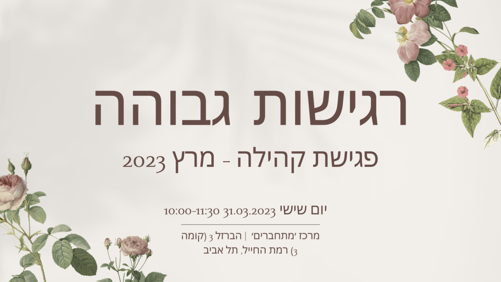 לידיעתכם! בנוסף למפגשים החודשיים מתקיימת גם קבוצת רגישות שבועית – לפרטים נוספים: קבוצת רגישות גבוהה