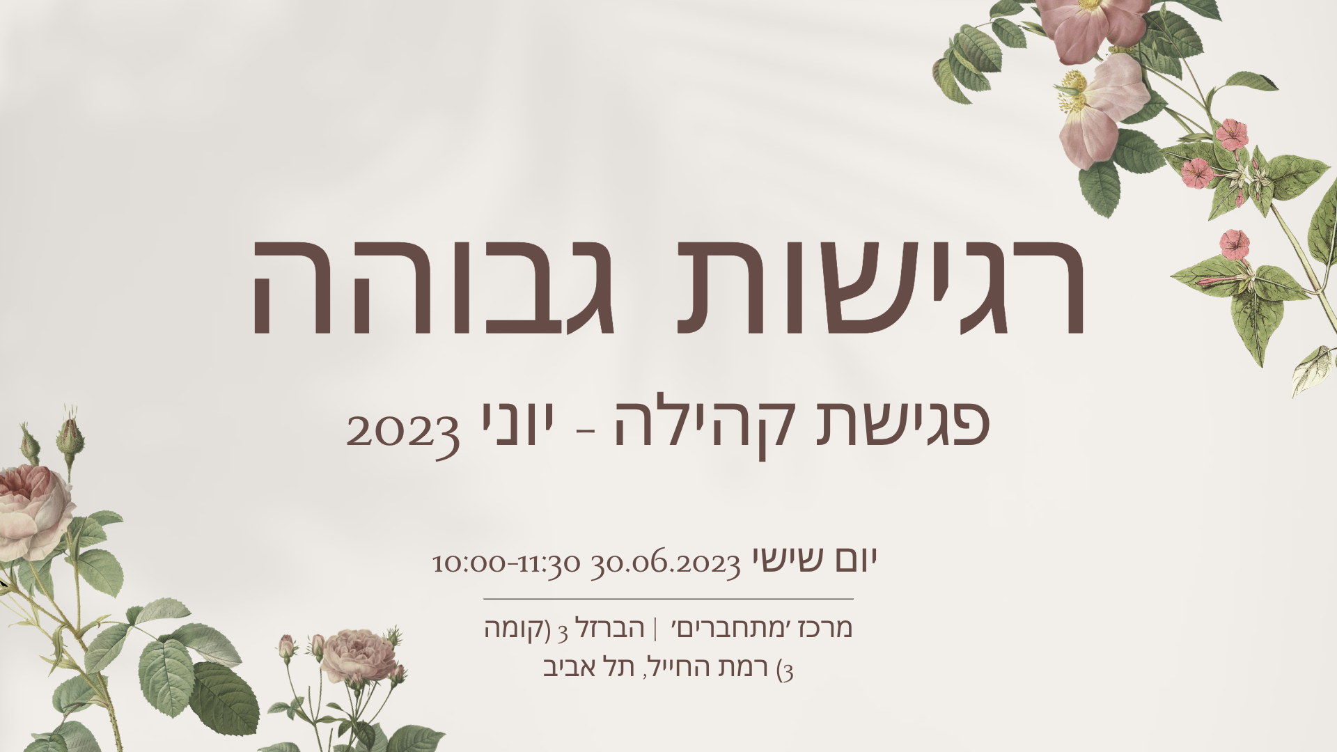 ניפגש, נשוחח, ונשתף אודות אירועים והתמודדויות בחיינו.